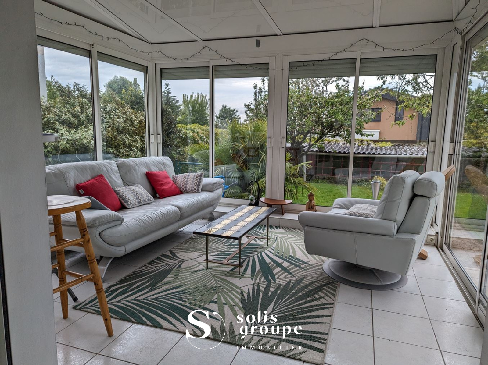 Véranda exposée plein sud donnant sur un jardin clos de 300 m²